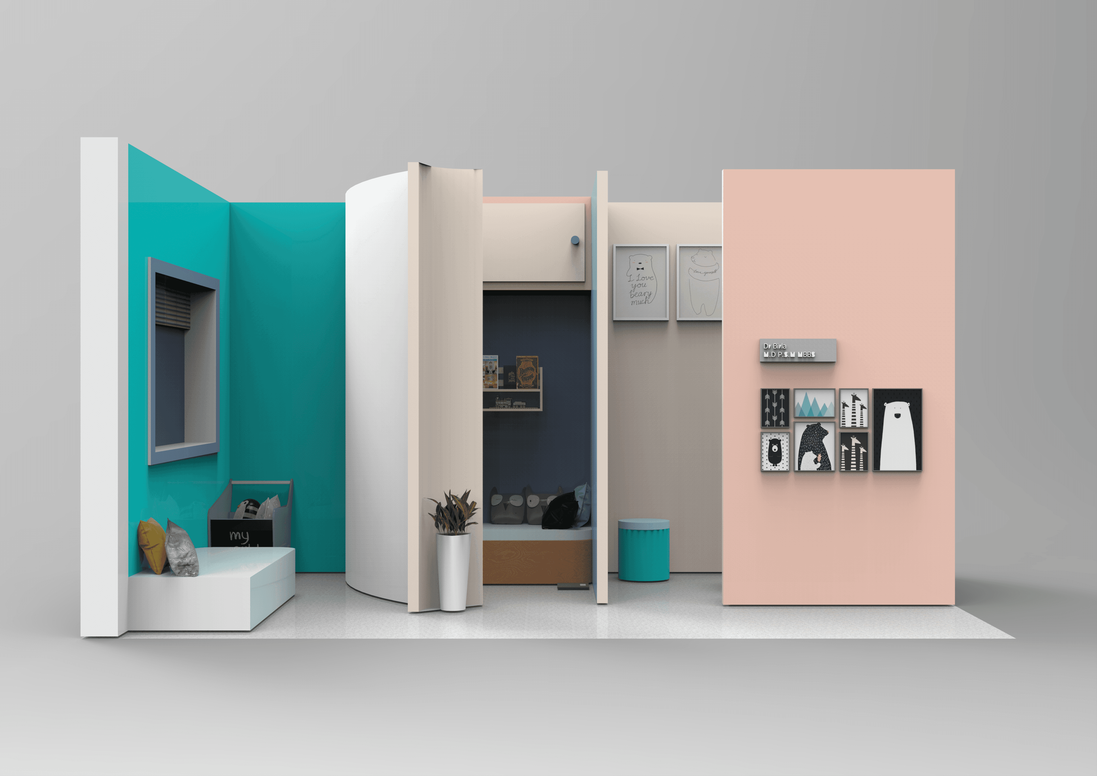 A 3D pediatrician clinic created and rendered which helped in visualizing different spaces.