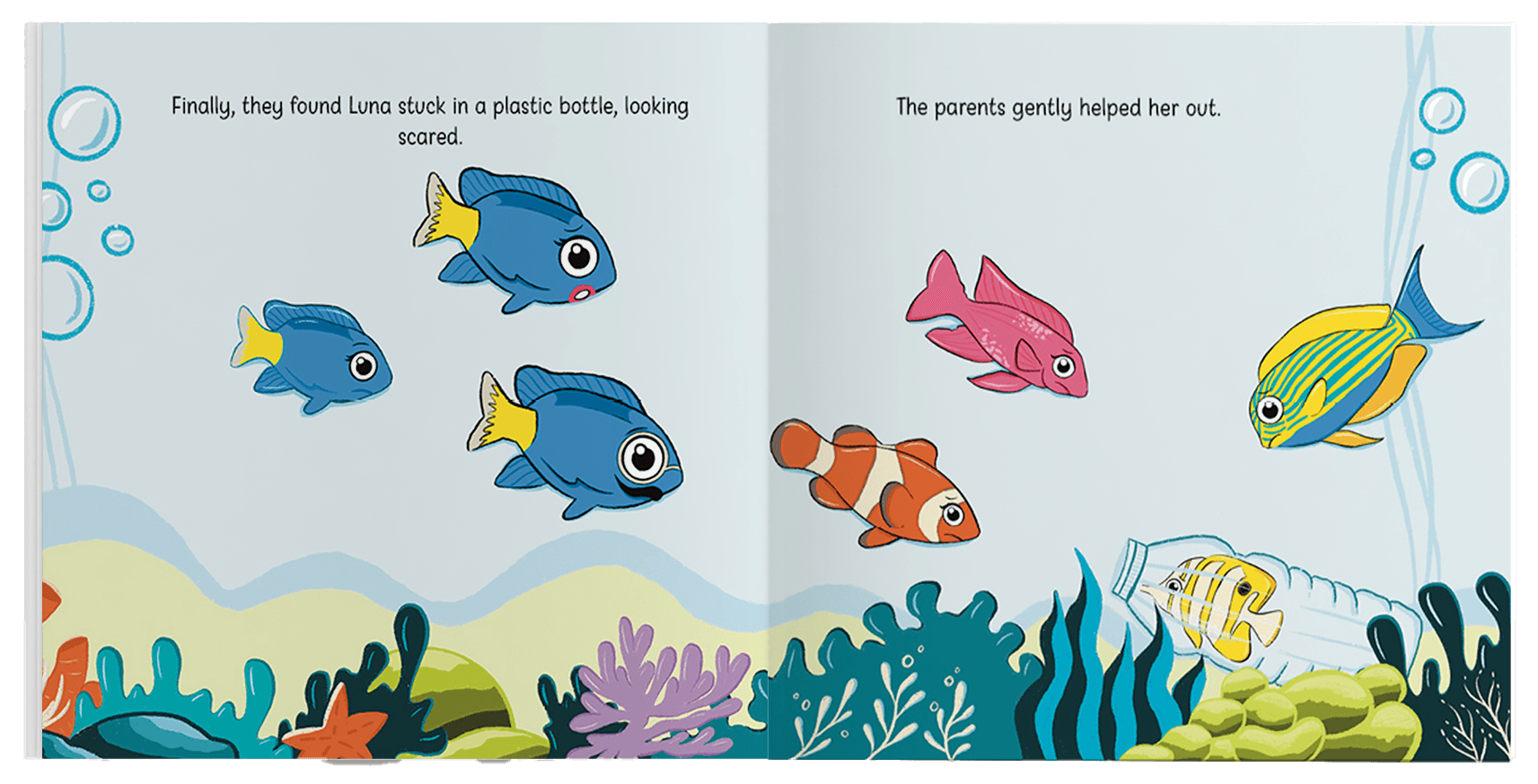 Bubble's Brave Battle is an illustrated storybook for kids based on the marine ecosystem along with interactive colouring activities.