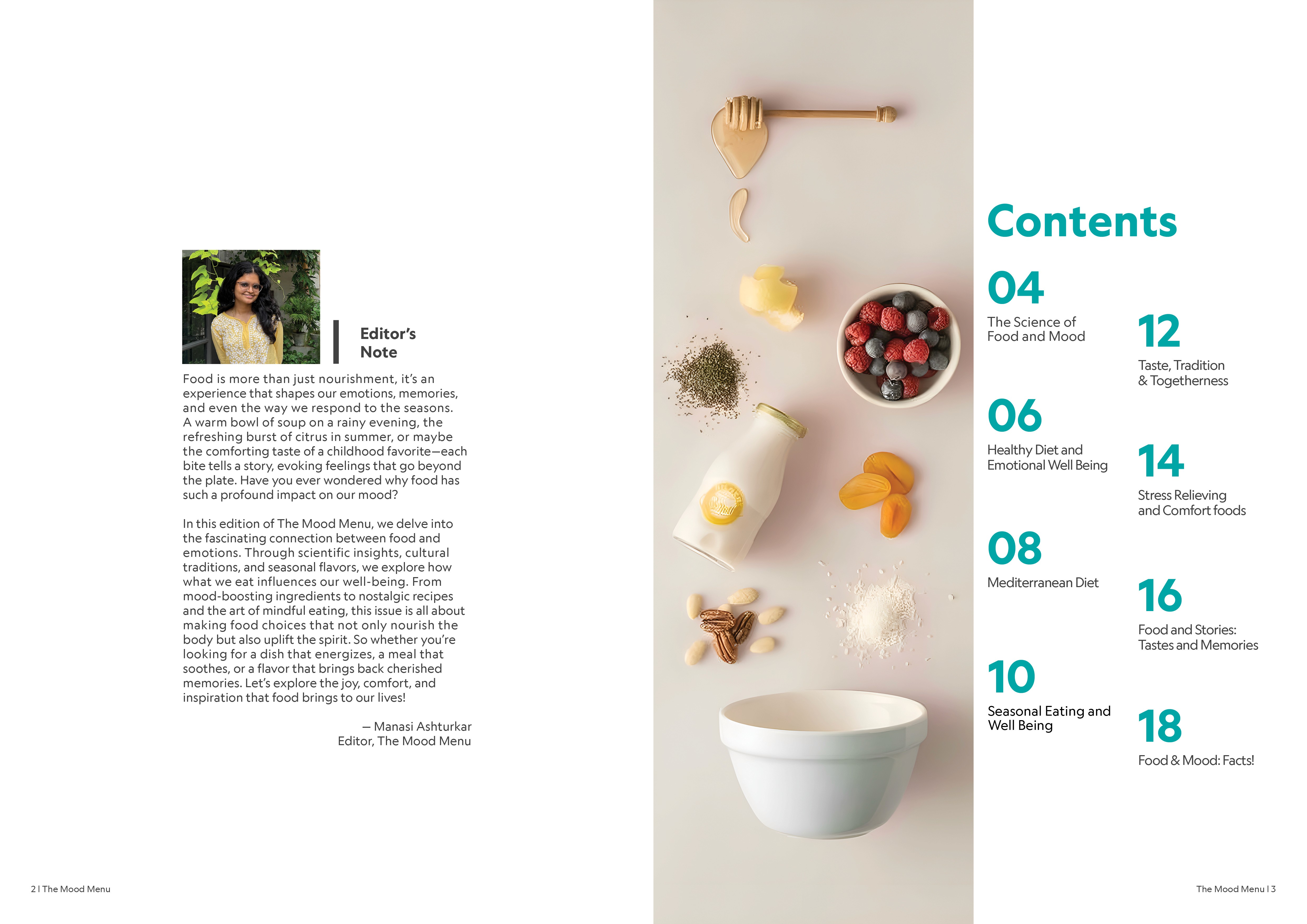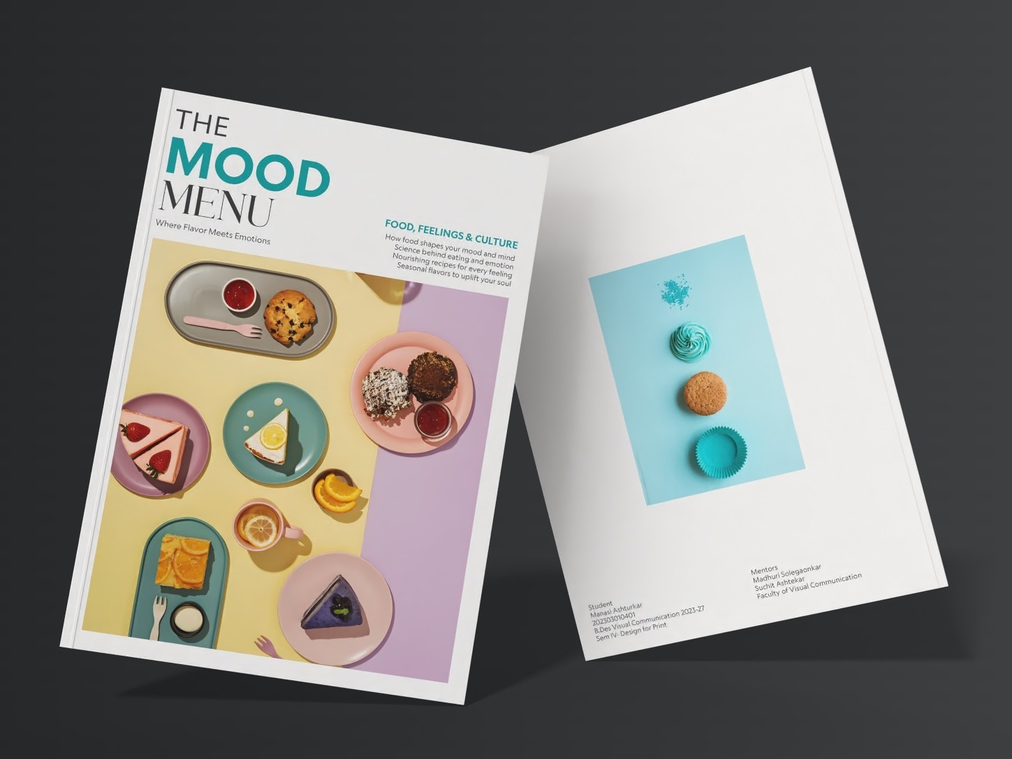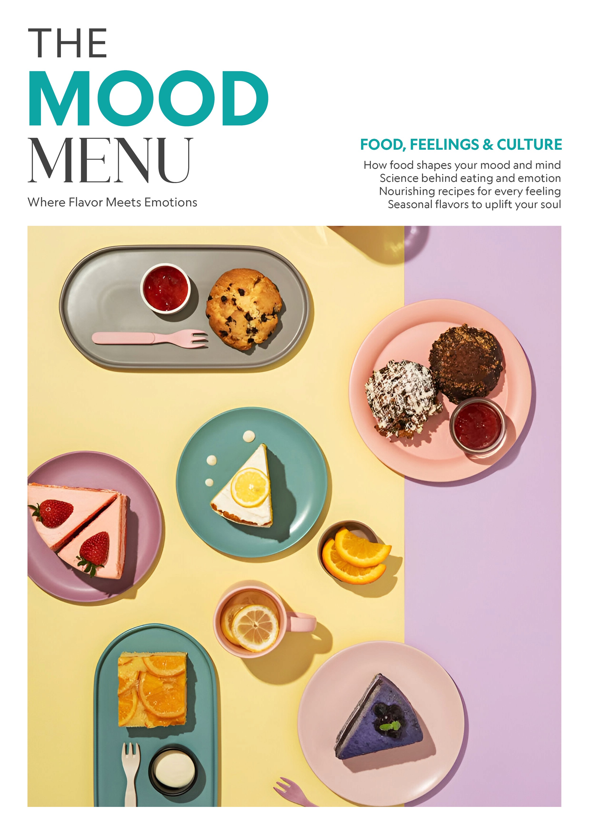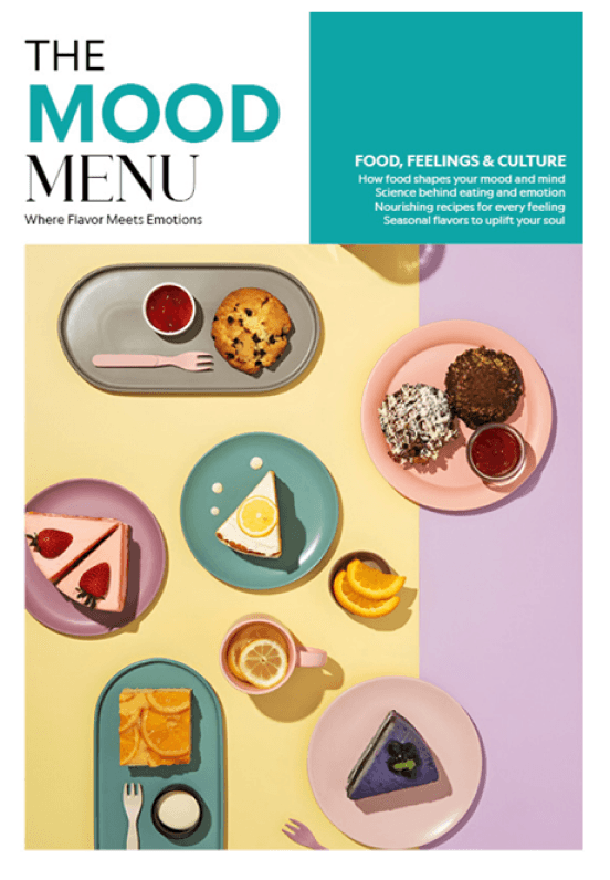 The Mood Menu explores the relationship between food and emotions. The magazine looks at how taste, memory, and culture influence how we feel, using visuals, typography and storytelling to connect food with mood.