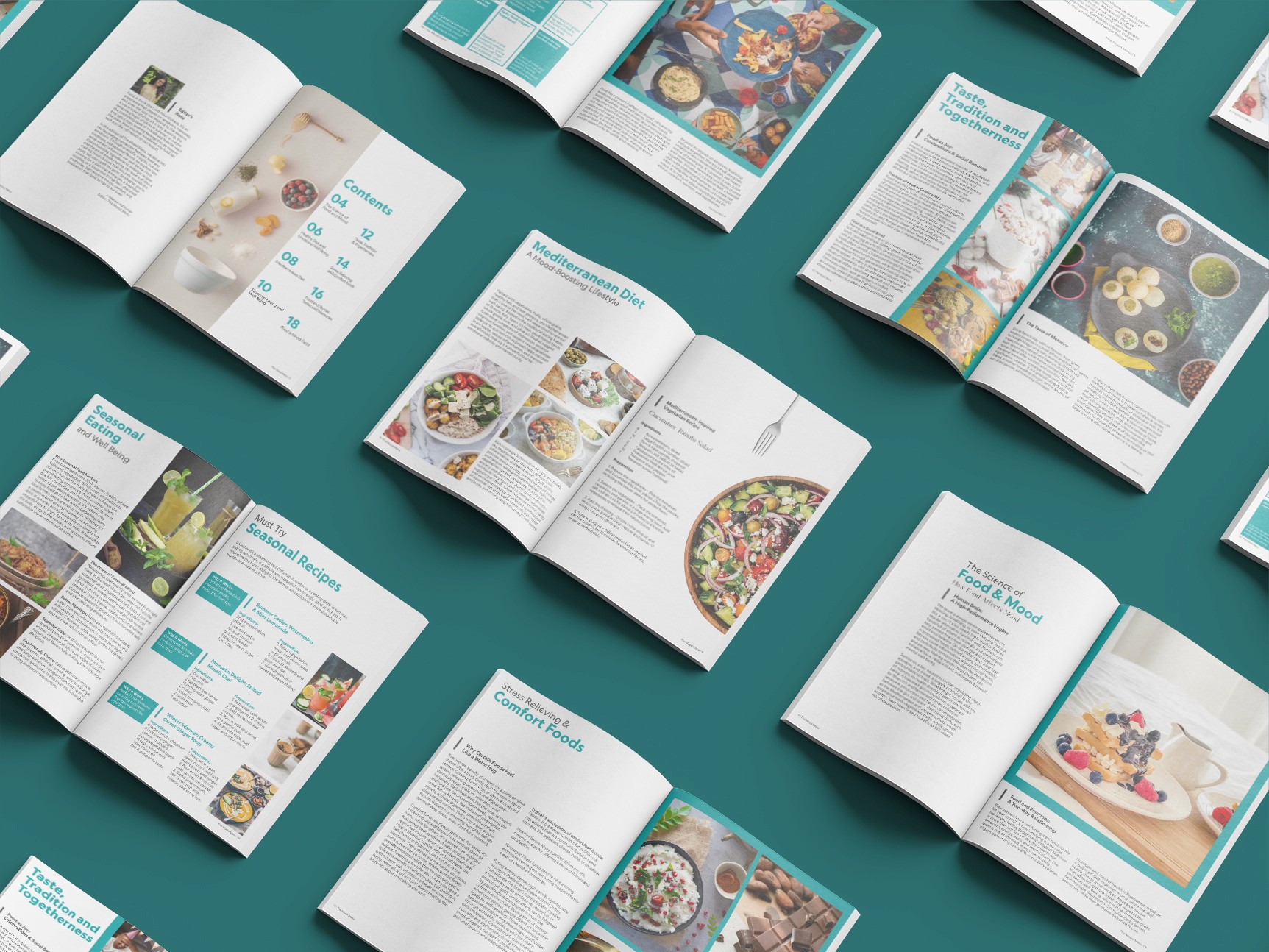 To design a visually engaging magazine that explains the emotional and psychological impact of food through design, research and content.